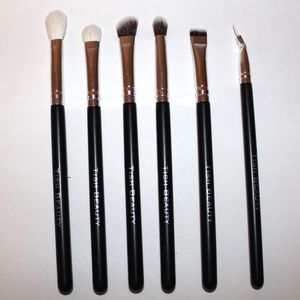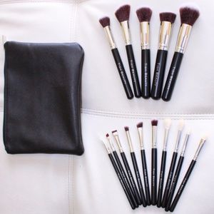 This is a gorgeous set of 15 makeup brushes. This set includes 5 face brushes and 10 for the eyes. The bristles are extremely soft to the touch. Minimal/No shedding, easy to wash. Set comes with a black faux leather cosmetic case.