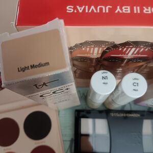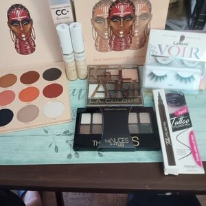 9 piece makup bundle includes, anti age hydrating CC+ illumination, 2 Loreal true match serum corrector, 3 palettes, L A palatte, nude palatte, large Juvia's The Warrior palatte, 2 eyelash sets