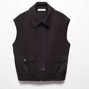 Express your personal style by wearing this Zipped Gilet from Mango. Made from viscose-blend fabric, this sleeveless gilet features straight design, shirt-style collar, twin buttoned flap pockets at front, button fastening on the front, front zip closure, and hem with elastic band.