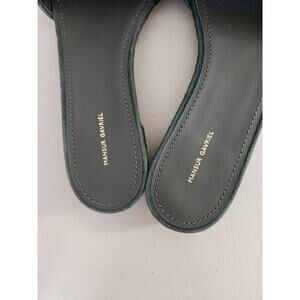 New Mansur Gavriel Suede Flat Slide Sandal Size 36.5 Dark Green