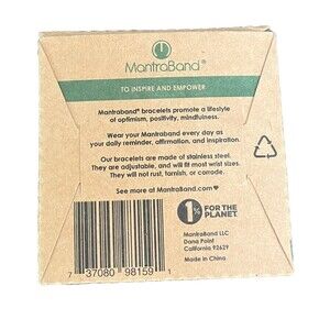 This listing is for a brand new in box MantraBand with the theme of Live, Laugh, Love. It is made of stainless steel and is adjustable. It will fit most wrist sizes. It will not rust, tarnish, or corrode. Please look over all pictures carefully before purchasing. It comes from a smoke free but pet friendly home. Feel free to message me with any questions. I ship within 24 to 48 hours after receipt of payment.