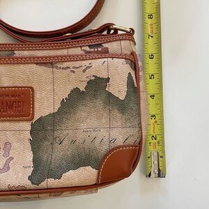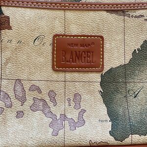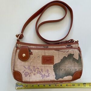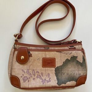 Super cute crossbody featuring a map design. It includes an external zipper wallet pocket and two internal pockets (one zipper pocket and one snap) for lots of organization. It is in excellent preowned condition.