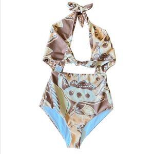 New! Mara Hoffman Tie-Front Cutout One-Piece Halter Swimsuit