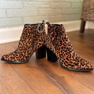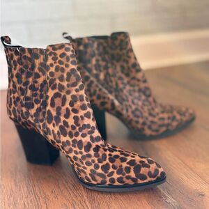 New Marc Fisher Alva Ankle Heeled Bootie Leopard Cheetah Animal Print