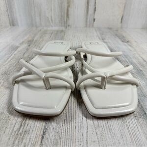 New Marc Fisher Fiada 2 Square Toe Faux Leather Thong Sandal In White #597