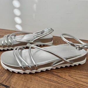 New Marc Fisher Joylyn Silver Gladiator Strappy Platform Sandals Women Size 9.5 - new without tags - only tried on so soles have some dirt - super cute strappy gladiator style