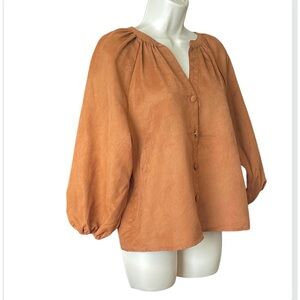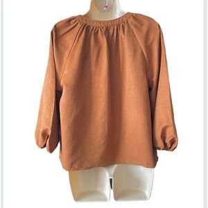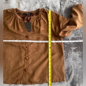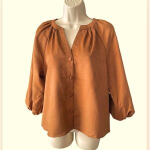 New Marc New York Womens Brown Balloon Sleeve Faux Suede Blouse Size S Button Up