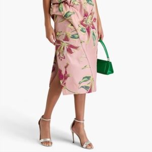 New Marchesa Notte Draped One-Shoulder Floral Jacquard Midi Cocktail Dress NWT