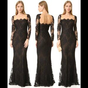 New Marchesa Notte lace illusion neckline square neck long sleeve formal gown