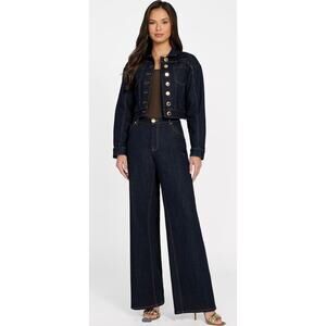 New Marciano By Guess Kylie Relaxed Denim Wide Leg Pants Dark Jeans 25 x 34