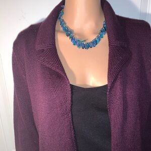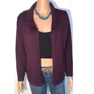 New Marikan Deep Purple Italian Cardigan Wool Blend Sweater large