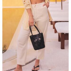 Marine Layer Women's Elle Relaxed Crop Pull On Cotton Pants. This is the kind of pant that looks like breezy, relaxed trousers but feels like pajamas. This easy pant has a mid-rise, tapered fit, and is made form our signature Stretch Selvage fabric, so it moves with you and feels broken-in right off the bat.