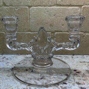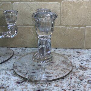 New Martinsville Double Light Candlestick Teardrop - Clear Base, set of 2