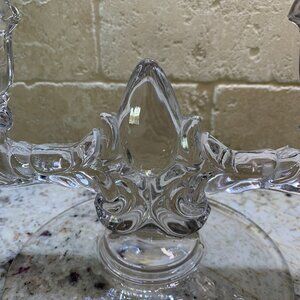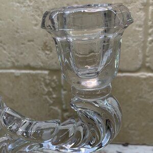 Beautiful vintage double candle holders. In clear glass with plain base. Beautiful separate or as a set. Vintage condition.