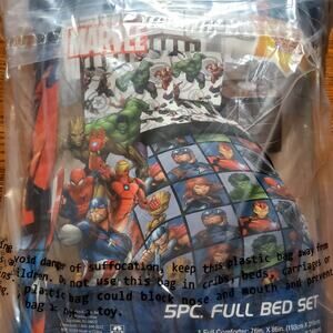 Get ready to transform your child's bedroom into a superhero's haven with this fantastic Marvel 5-piece full-size bed sheet set! This brand new, reversible sheet set is perfect for any young Marvel fan. The vibrant design features their favorite characters, making bedtime an exciting adventure. Made with soft, durable materials, these sheets ensure a comfortable and cozy night's sleep. Don't miss out on this amazing deal to bring the Marvel universe into your home!