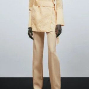 New Massimo Dutti Wool Suit Trouser Pants With Central Seam Tan Cream