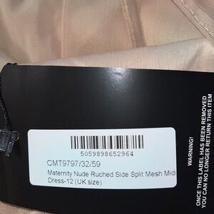New Maternity Nude Ruched Side Split Mesh Midi Dress