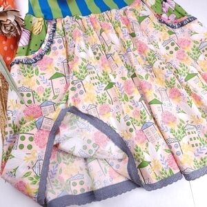 Matilda Jane Pink Floral Green Blue Boho Striped High Waist Skirt Sz M