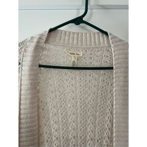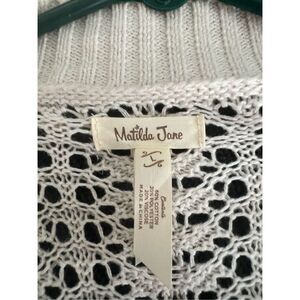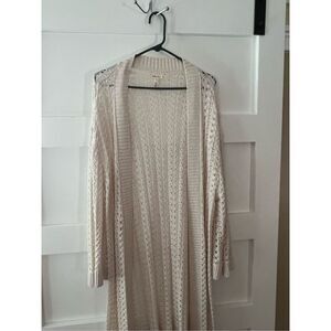 New! Matilda Jane brand. Size L. Longer length cardigan. Body: Cotton Polyester Viscose. Lightweight, open crochet. Approx across chest 23” length 39”