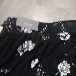 Elegant black wrap skirt with a floral design. Perfect for any occasion.