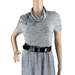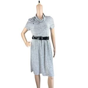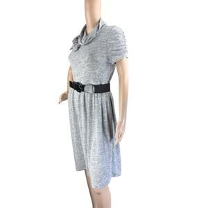 New Maurices Knitted Heather Gray Cowl Neck Short Sleeve Belted Sweater Dress M