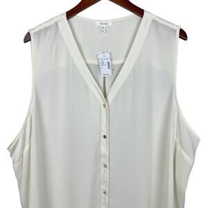 New Maurices Sleeveless Blouse Cream Button Front Semi Sheer Women's 3X