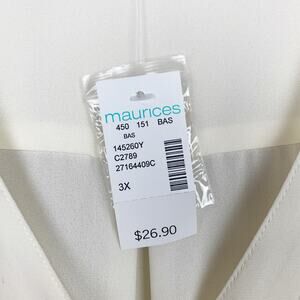 Brand new Maurice's sleeveless blouse in women's size 3X. Button front. Cream color 100% polyester. Machine washable. Semi sheer. New with tags!
