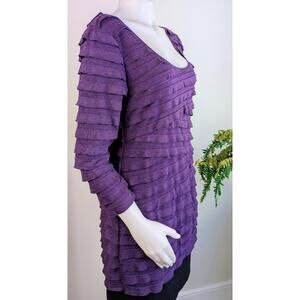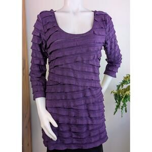New Max Edition Tunic Top Medium Purple Shutter Ruffle Scoop Neck 3/4 Sleeve