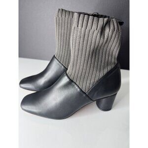 New Max Mara Block Ankle Boot Dark Gray Leather Knit Fitted Sock EU 37 US 7