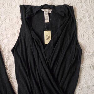 New Max Studio Jumpsuit Dark Blue Knit Wide Leg, Sleeveless, V Neck Surplice Faux Wrap with Pockets & Adjustable Drawstring Waist Large Women