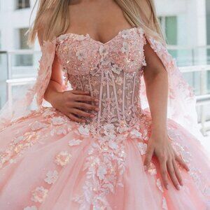 New Maxi Sheer Corset Bodice Mesh Quinceanera Gown w/ Floral Embroidery GL3468