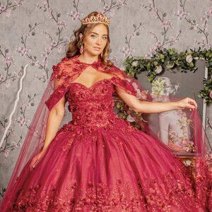 New Maxi Sleeveless Mesh Dress w/ Floral Applique & Removable Cape GL3179