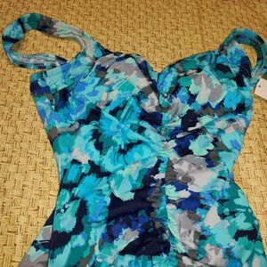 New Maxine Of Hollywood Instant Minimizer Teal Designed Bathing Suit Women's 8