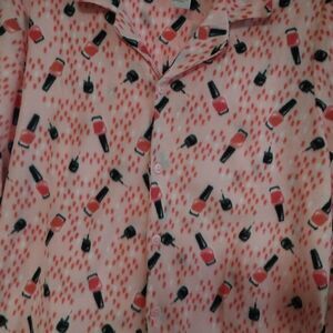 New Mayfair Pink With Nail Polish Fleece Pajama Set Size Women's L