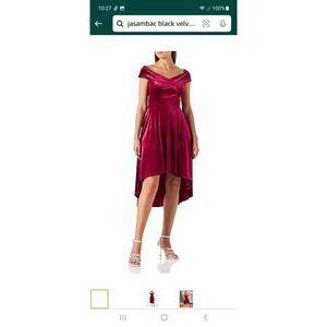 New Medium Jasambac Black Velvet Off Shoulder High Low Party Holiday Dress NWT