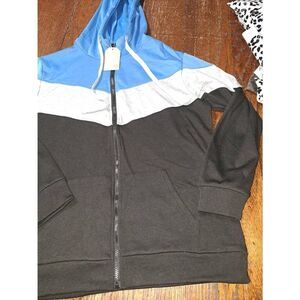 New With Tags Attached Women's Size Medium Pinkmarco Black, Blue, Grey Super Soft Long Sleeve Front Zip Fleece Sweatshirt Hoodie with Pockets