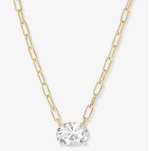 The icon, reimagined. The Baby Hello Gorgeous Necklace is a scaled-down stunner with all the shine of the original. Featuring our iconic pendant in a smaller size and paired with the delicate Micro Samantha Chain, it's the perfect mix of sweet and chic. Finished with a bezel-set simulated diamond at the clasp for an elevated touch. 16"