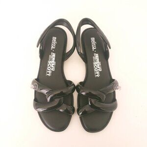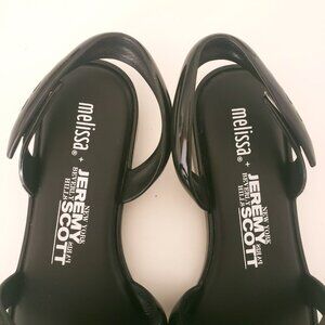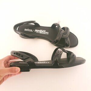 New Melissa Jeremy Scott Tube Slingback Sandals Black Rubber Flat Size 7