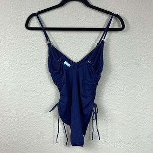 New Melissa Odabash Havana Navy Blue One Piece Swim Suit Ruched Sz 6