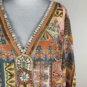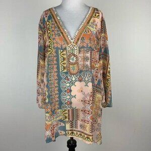 New Melissa page womens top size 2X multicolored geometric beaded v-neck tunic beach resort wear
