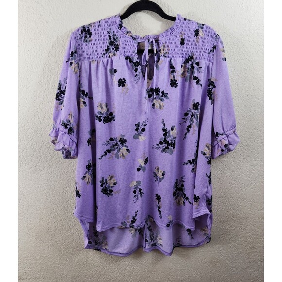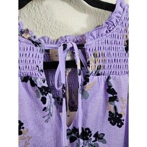 New Melloday Womens 2X Purple Floral Short Sleeve Tie Neck Smocked Blouse. No flaws please see pictures for details.