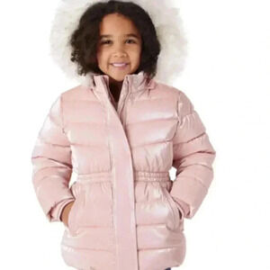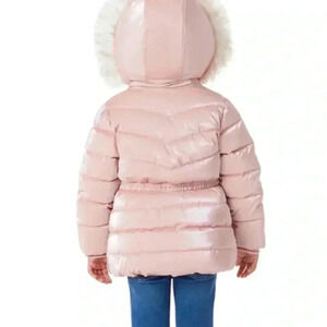 New Members Mark Toddler Sz. 4T Puffer Jacket Pink Removable Faux Fur Hood NWT