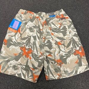 Experience comfort and style with Columbia's board shorts, featuring a vibrant orange and gray color scheme. Designed with an elastic waistband for a secure fit, these shorts are perfect for any swim adventure. Enjoy the quick-drying fabric that ensures you stay comfortable both in and out of the water.