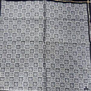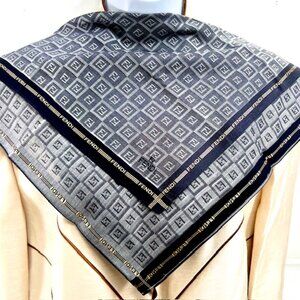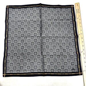 New Men Fendi Handkerchief Cotton/Silk 19" Black Gray Logo Ptented all over(57)