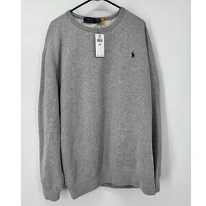 New Men Polo Ralph Lauren Fleece Heather Grey Crewneck Pullover Sweatshirt, XXL