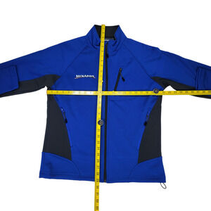"Represent the Menards team with pride in this Official Employee-Issue Jacket. In a striking blue color, size Medium, this jacket is designed to keep you comfortable and dry with its moisture-wicking lining. The professional look is completed with the Menards logo, making it perfect for work or representing your favorite home improvement brand. Brand new, it's functional outerwear for those who value comfort and style."
