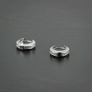 New Men’s 14k Gold Plated Silver Sim. Diamond Hoop Studs