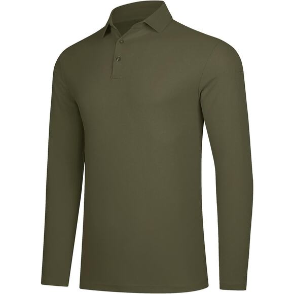 New Mens 2 XL Long Sleeve Polo Golf Athletic Shirt - Dark Green