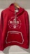 Bold red hoodie with NC State Soccer print. Features white text and graphics. Comfortable and stylish.