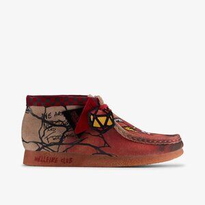 Our classic Wallabee takes on Stranger Things in a unique design inspired by The Upside Down. With embossed vine details and a smudged red color scheme, it channels the eerie energy of the Netflix Show's imagined alternative dimension, while the Hellfire Club logo to the vamp calls out Hawkins High's most infamous society. And, for a fresh spin on our icon, we've reshaped one of our traditional logo fob to replicate a Dungeons & Dragons dice - the ultimate tribute to Stranger Things!